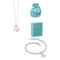 Esse conjunto em forma de coração exala doçura, e o enfeite opala azul reflete a luz brilhante.